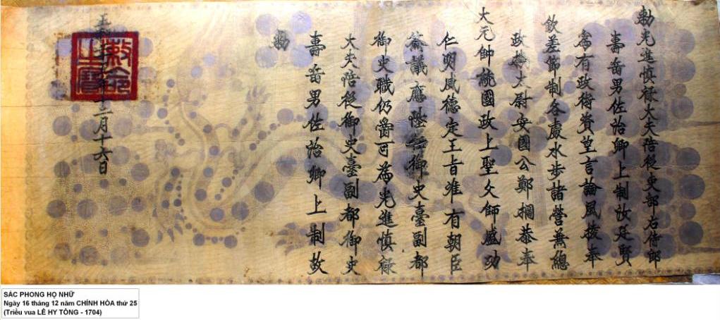 Sắc phong Ngày 16 tháng 12 năm Chính Hòa thứ 25
